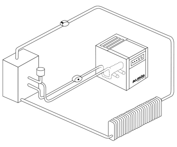 Все компоненты оборудования, необходимого для рекуперации тепла, устанавливаются в компрессор в процессе его изготовления.